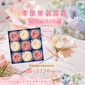 【母親節優惠組合】草莓&荔枝9入禮盒+玫瑰馬林糖花束