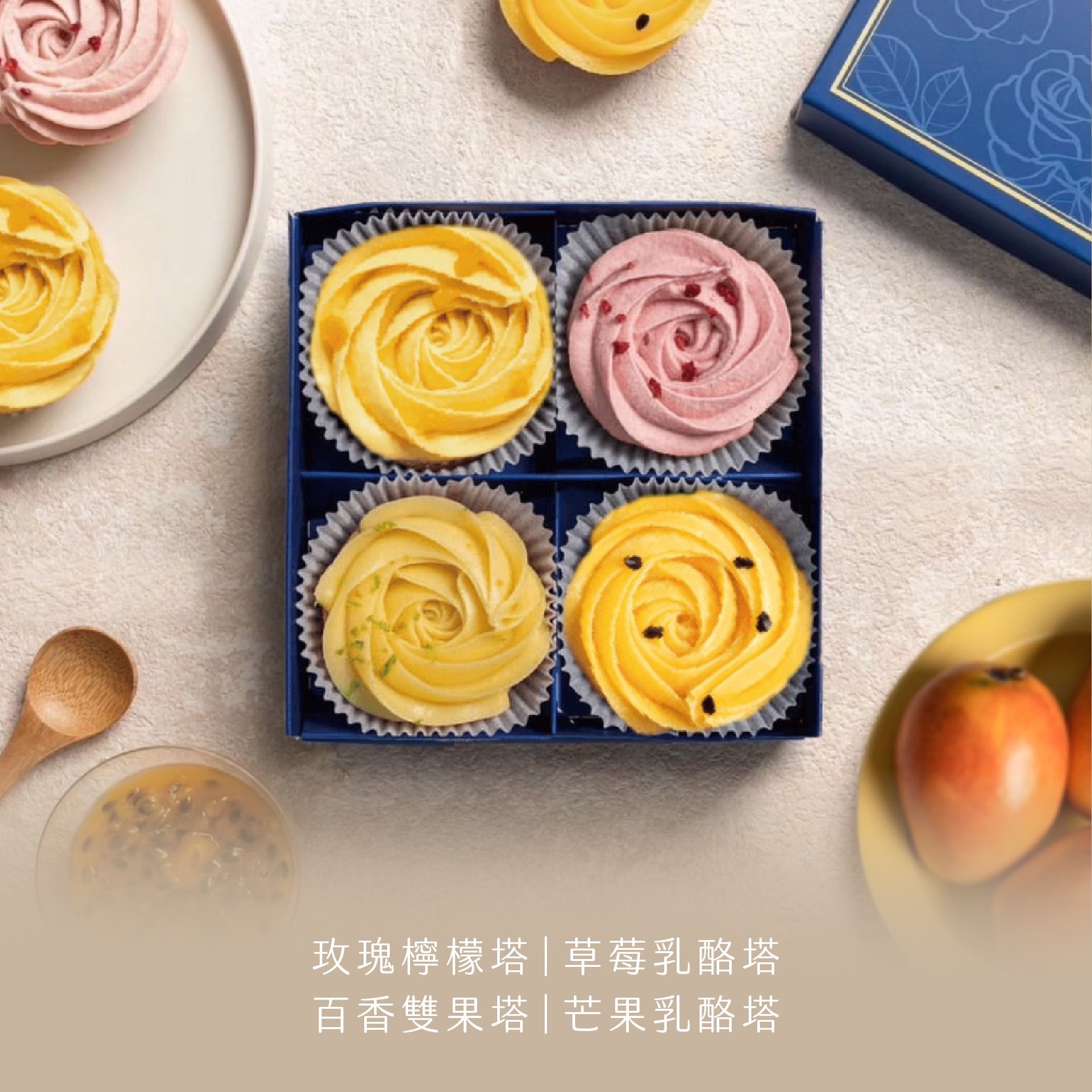 ②玫瑰檸檬塔/草莓乳酪塔/百香雙果塔/芒果乳酪塔