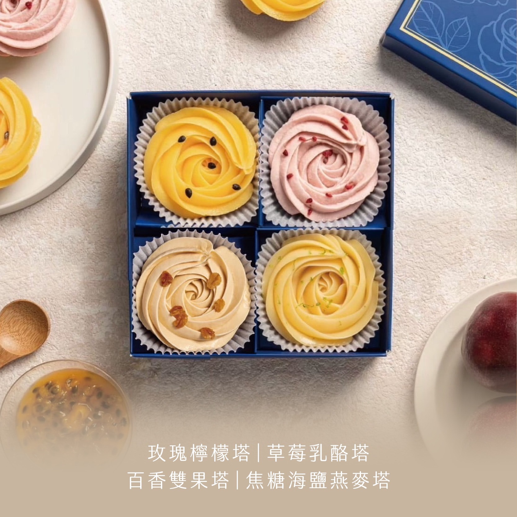④玫瑰檸檬塔/草莓乳酪塔/百香雙果塔/焦糖海鹽燕麥塔